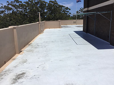 The roof was high pressure washed and all damage and loose old membrane made good.