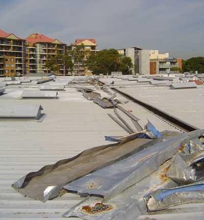 The low roof pitch and extremely shallow box gutters had been incapable of removing the water on the roof quickly enough during heavy rain periods and this aspect caused additional damage and leaks. (due to the stramit panelling system below the roof line, leaks were difficult to locate)