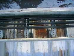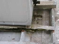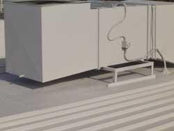 Numerous air-conditioning units of all sizes and cable trays, mostly supported on wooden supports which invariably had rotted through. New aluminium supports were installed under all equipment after the extensive rust in these areas was treated.