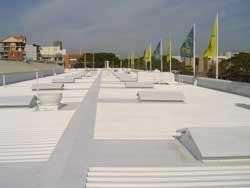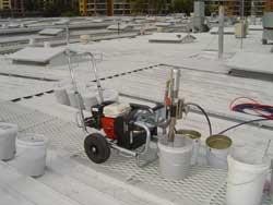 The membranes employed were Ultra Flex (polyurethane/acrylic trafficable UV stable membrane) at