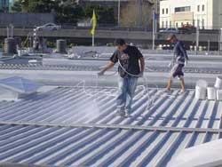 A rust converter was applied once the roof was pressure cleaned to expose all rust areas that were not evident on initial inspection. A waterbased two pack epoxy primer was used as a base coat before applying the Ultra Flex system with fibre reinforcement and the insulation membrane.