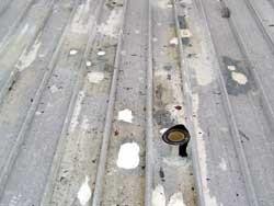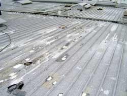 The roof was over 40 years old, it has been previously patched and membrane coated. All previous repairs had not led to a long term leak free roof with absence of rusting and severe sheeting degradation. The previous membrane extensively bubbled and was peeling off.