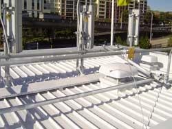 Once the roof was repaired and coating systems applied, it was critical that trades people going onto the roof to undertake maintenance to the plant there or mobile phone towers, did not walk on the roof membrane and damage the coating, therefore aluminium walkways were installed throughout the roof enabling access to all equipment without trafficking the membrane coating.