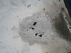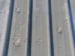 The sheeting profile has not been available for many years so replacement sheeting for those badly corroded areas was not available. In those areas and all holes/rust affected areas, the rust was treated and the damaged/rusted areas and numerous holes were fibreglass/membrane patched prior to the main coatings being applied.